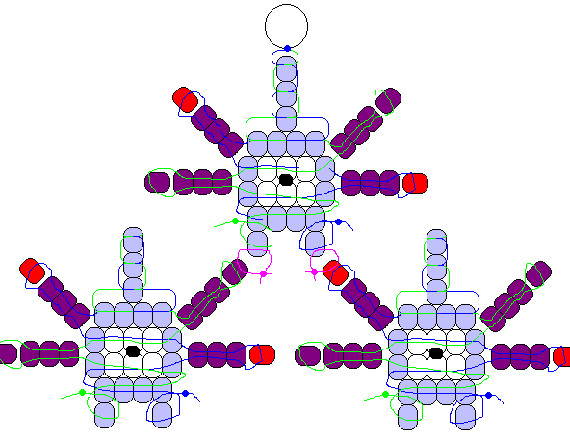 Check out these designs showing you how to make the entire Pokémon menagerie out of beads. The artist is Jason. (Above: Magneton.) The drawings are great, lo-fi patternmaking, and the site is a fine example of Dirt Style design. While the above image's suggestion of computer pixelation is largely unintentional, artist/musician/programmer Joe Beuckman pushes the connection explicitly in his beadworks. The image below, captioned "Karate Kicking Ensues," is from a series based on scenes from Datasoft Presents Bruce Lee, programmed by Ron J Fortier, 1983 (graphic design by Kelly Day).