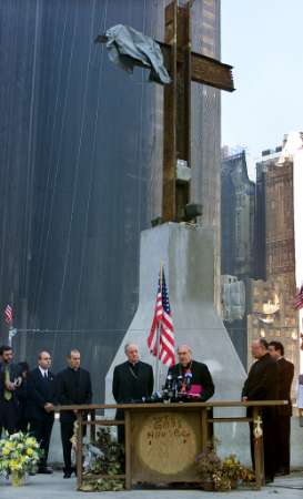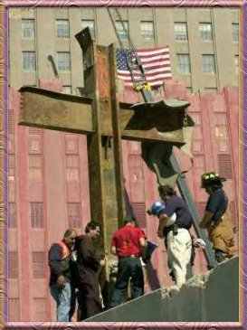have to say i was a little put off yesterday as i rode by the large i-beam cross that lords above the ground zero wreckage. i could appreciate it to an extent and what it might mean to others but it still creeps me out. heres another photo of the cross.