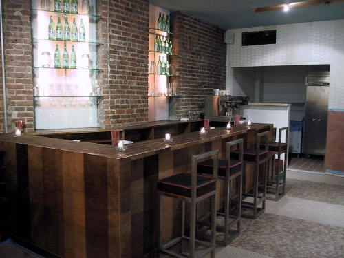 The marble bar top is still stuck somewhere in Italy.