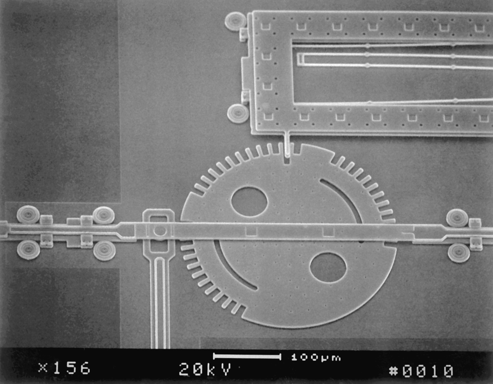 The Recodable Locking Device, which uses microelectromechanical system (MEMS) technology so small that it takes a microscope to see it, is a series of tiny notched gears that move to the unlocked position only when the right code is entered. It's the first known mechanical hardware designed to keep unwanted guests from breaking codes and illegally entering computer and other secure systems.Still, and this is why I mention it, you should check out the incredibly cool picture here. That wheel is 300 microns in diameter, or "about the size of the period at the end of a sentence."